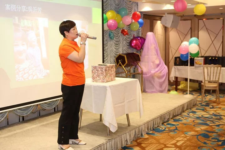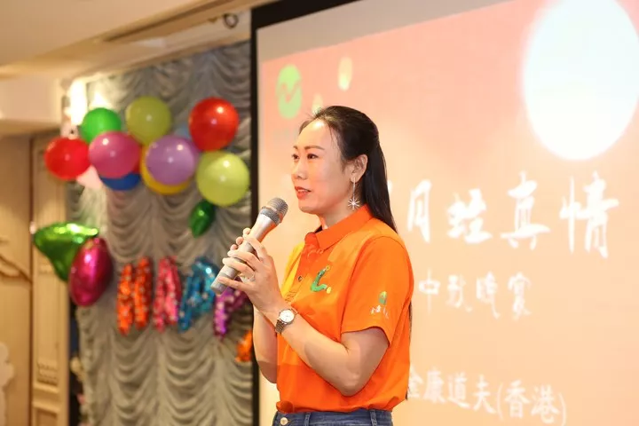 芳姐上台分享与金康道夫结缘经过
